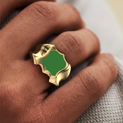 De bovenstaande massieve Nevin zegelring met schild groene emaille bovenkant staat bol van traditie. De zegelring werd van oudsher van vader op zoon doorgegeven. Met deze massieve gouden zegelring start je je eigen traditie. Ook plaatsen we graag een gravure voor je, zoals een monogram of een familiewapen gravure. Kijk voor meer informatie en de mogelijkheden hiervan bij onze kennisbank. De verschillende afdelingen binnen de kennisbank vind je onderaan deze pagina. Jouw traditie begint hier, met de traditionele gouden Nevin zegelring. Wat denk je van deze traditionele gouden zegelring? Deze Nevin zegelring stel je helemaal zelf samen met onze configurator. Vervolgens wordt jouw persoonlijke wapenschilden Nevin zegelring met de hand gemaakt door onze goudsmeden. De keuze van het edelmetaal en de edelstenen kun je helemaal naar eigen wens invullen. Heb je bepaalde ideeën voor jouw zegelring, maar kun je deze niet bij onze opties vinden? Laat het ons dan gerust weten. Wij maken jouw persoonlijke traditionele zegelring geheel naar jouw wensen.Iedere dag worden nieuwe sieraad ontwerpen toegevoegd aan de website. Ons team van gepassioneerde designers streeft ernaar om tot de mooiste ontwerpen te komen, en een zo gevarieerd mogelijk aanbod. Heb je ergens een ring gezien welke je wilt laten maken, stuur ons dan bericht. Wij sturen je graag een offerte toe. Hierin bieden wij de beste prijs en kwaliteit. Je zult dit zeker niet kunnen afslaan!Onze goudsmeden vervaardigen pas je ring, zodra je deze besteld hebt. We hebben geen voorraden. Het voordeel hiervan is dat we de voorraad niet door hoeven te berekenen in de prijs, en wij daardoor sieraden kunnen leveren tegen een bijzonder lage prijs.Om het voor jou makkelijker te maken kun je ieder besteld sieraad binnen 30 dagen na aflevering eenvoudig weer retour sturen.