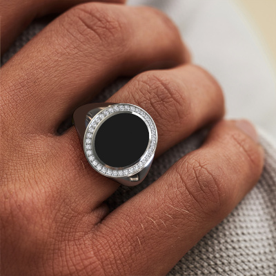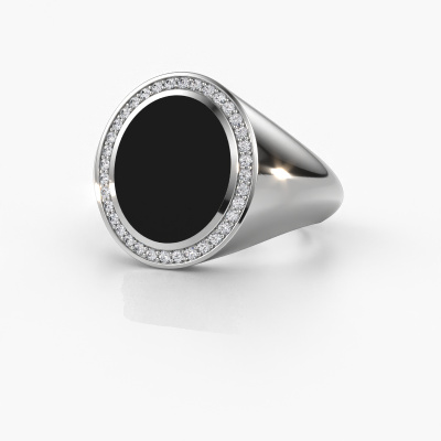 De bovenstaande ovale Adam 3 zegel ring met ovale vorm zwarte emaille bovenkant staat bol van traditie. De zegel ring werd van oudsher van vader op zoon doorgegeven. Met deze ovale witgouden zegel ring start je je eigen traditie. Ook plaatsen we graag een gravure voor je, zoals een monogram of een familiewapen gravure. Kijk voor meer informatie en de mogelijkheden hiervan bij onze kennisbank. De verschillende afdelingen binnen de kennisbank vind je onderaan deze pagina. Jouw traditie begint hier, met de exclusieve witgouden Adam 3 zegel ring. Jouw persoonlijke diamanten Adam 3 zegelring stel je zelf samen, en wordt met liefde en passie door onze goudsmeden vervaardigd. Wil je liever een andere optie dan de hier afgebeelde witgouden Adam 3 zegelring? Dan heb je via de configurator keuze uit diverse mogelijkheden. Kom je er niet helemaal uit, dan dienen wij je graag van advies!Elke dag worden nieuwe ring ontwerpen toegevoegd aan de site door ons team van talentvolle en gepassioneerde ontwerpers. Hierbij wordt ernaar gestreefd om een zo gevarieerd mogelijke collectie aan te bieden. Heb je bepaalde ideeën voor een ring, neem dan eens contact op voor een offerte. Wij doen je een aanbod wat betreft prijs en kwaliteit waar je geen nee tegen zult kunnen zeggen.Omdat wij zelf alle sieraden maken en direct aan jou leveren, kunnen wij je een ring leveren tegen een prijs die je nergens anders zult tegenkomen. Een ring wordt pas gemaakt als we een bestelling krijgen, hierdoor hebben wij geen dure voorraden en kunnen wij jou de beste prijs garanderen. Wij begrijpen dat het kopen van een sieraad online spannend is, en denken graag met je mee over de mogelijkheden binnen jouw budget.Om het voor jou makkelijker te maken kun je ieder besteld sieraad binnen 30 dagen na aflevering eenvoudig weer retour sturen.