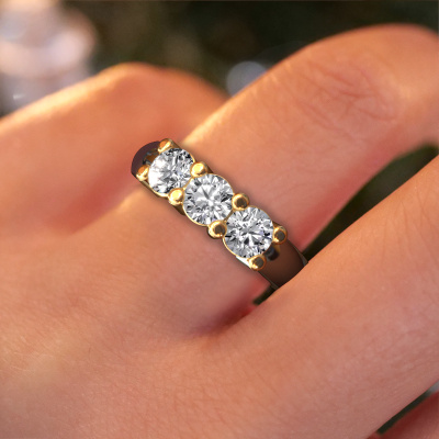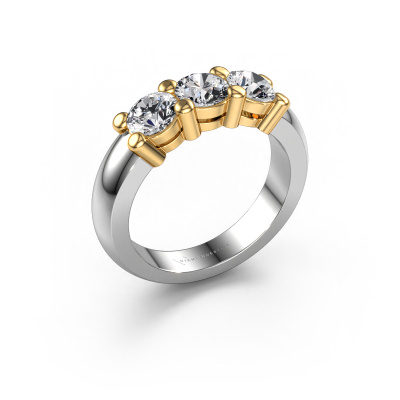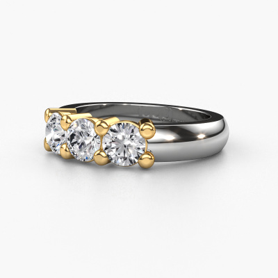 Deze 3 steens ring heeft de naam Michelle 3. Dit type ring wordt een 'alliance' ring genoemd, omdat hij recht is uitgevoerd. Hierdoor kan de ring samen met andere ringen gedragen worden. Deze ring is uitgevoerd in 14 karaat witgoud en heeft diamant in combinatie met lab-grown diamant ter grootte van 0.50 crt in de band. Zoals je ziet, worden er bij deze prachtige witgouden alliance ring diamanten naast elkaar op de ring gezet. De betekenis van alliance is letterlijk 'samenwerken'. En dat is precies wat deze edelstenen doen: samen creëren ze op de band een extra bijzonder effect bij een klassieke ring! Een prachtige symboliek voor een ring, toch? Alle zorgvuldig geselecteerde diamanten worden met de hand geplaatst door onze meester goudsmid. Een zeer precies werkje, dat alleen door onze unieke combinatie van puur vakmanschap en de modernste technieken het optimale effect krijgt. Alle edelstenen moeten namelijk precies op dezelfde manier geplaatst worden om het licht perfect te verspreiden. Daarom zal de goudsmid deze ring steeds weer tegen het licht houden om te zien of de diamanten juist geplaatst zijn. Het vraagt een vaardige hand en veel geduld, maar het resultaat is een echt meesterstuk. En daar gaan we voor!Ben je gebonden aan een bepaald budget? Neem gerust contact met ons op, we adviseren graag over alle mogelijkheden. Sowieso leveren wij alle ringen tegen een prijs die je nergens anders tegen komt, doordat we de ring pas vervaardigen wanneer je deze besteld. Hierdoor kunnen wij je een beste prijs garantie geven.