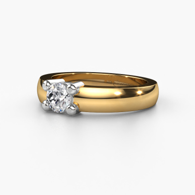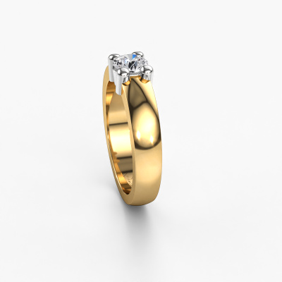 Deze 1 steens ring heeft de naam Yasmin 1. Dit type ring wordt een 'alliance' ring genoemd, omdat hij recht is uitgevoerd. Hierdoor kan de ring samen met andere ringen gedragen worden. Deze ring is uitgevoerd in 14 karaat goud en heeft 1 diamant ter grootte van 0.40 crt in de band. Zoals je ziet, wordt er bij deze prachtige gouden alliance ring 1 diamant naast elkaar op de ring gezet. De betekenis van alliance is letterlijk 'samenwerken'. En dat is precies wat deze edelstenen doen: samen creëren ze op de band een extra bijzonder effect bij een klassieke ring! Een prachtige symboliek voor een ring, toch? Alle zorgvuldig geselecteerde diamanten worden met de hand geplaatst door onze meester goudsmid. Een zeer precies werkje, dat alleen door onze unieke combinatie van puur vakmanschap en de modernste technieken het optimale effect krijgt. Alle edelstenen moeten namelijk precies op dezelfde manier geplaatst worden om het licht perfect te verspreiden. Daarom zal de goudsmid deze ring steeds weer tegen het licht houden om te zien of de diamanten juist geplaatst zijn. Het vraagt een vaardige hand en veel geduld, maar het resultaat is een echt meesterstuk. En daar gaan we voor! Omdat wij zelf alle sieraden maken en direct aan jou leveren, kunnen wij je een ring leveren tegen een prijs die je nergens anders zult tegenkomen. Een ring wordt pas gemaakt als we een bestelling krijgen, hierdoor hebben wij geen dure voorraden en kunnen wij jou de beste prijs garanderen. Wij begrijpen dat het kopen van een sieraad online spannend is, en denken graag met je mee over de mogelijkheden binnen jouw budget.Elke dag worden nieuwe ring ontwerpen toegevoegd aan de site door ons team van talentvolle en gepassioneerde ontwerpers. Hierbij wordt ernaar gestreefd om een zo gevarieerd mogelijke collectie aan te bieden. Heb je bepaalde ideeën voor een ring, neem dan eens contact op voor een offerte. Wij doen je een aanbod wat betreft prijs en kwaliteit waar je geen nee tegen zult kunnen zeggen.Om het voor jou makkelijker te maken kun je ieder besteld sieraad binnen 30 dagen na aflevering eenvoudig weer retour sturen. '