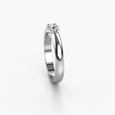 Deze 1 steens ring heeft de naam Michelle 1. Dit type ring wordt een 'alliance' ring genoemd, omdat hij recht is uitgevoerd. Hierdoor kan de ring samen met andere ringen gedragen worden. Deze ring is uitgevoerd in platina en heeft 1 diamant ter grootte van 0.25 crt in de band. Zoals je ziet, wordt er bij deze prachtige platina alliance ring 1 diamant naast elkaar op de ring gezet. De betekenis van alliance is letterlijk 'samenwerken'. En dat is precies wat deze edelstenen doen: samen creëren ze op de band een extra bijzonder effect bij een klassieke ring! Een prachtige symboliek voor een ring, toch? Alle zorgvuldig geselecteerde diamanten worden met de hand geplaatst door onze meester goudsmid. Een zeer precies werkje, dat alleen door onze unieke combinatie van puur vakmanschap en de modernste technieken het optimale effect krijgt. Alle edelstenen moeten namelijk precies op dezelfde manier geplaatst worden om het licht perfect te verspreiden. Daarom zal de goudsmid deze ring steeds weer tegen het licht houden om te zien of de diamanten juist geplaatst zijn. Het vraagt een vaardige hand en veel geduld, maar het resultaat is een echt meesterstuk. En daar gaan we voor! Door het gebruik van de modernste technieken, gecombineerd met ambachtelijk vakmanschap kunnen wij alle ringen zelf in ons atelier maken. Iedere ring wordt pas gemaakt nadat deze besteld is. Dit heeft als bijkomend voordeel dat we kunnen leveren tegen een prijs die je nergens anders tegenkomt.