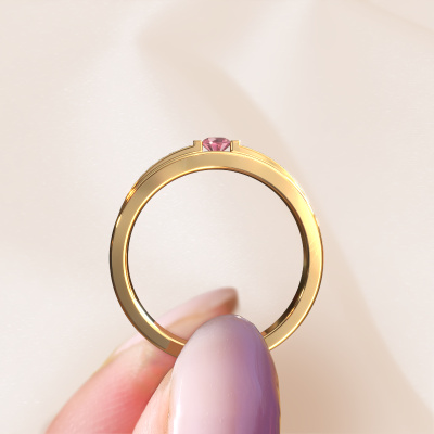 Deze ring heeft de naam Mable, deze ring uitgevoerd in 14 karaat goud is gezet met tourmalijn pink. Ben je op zoek naar een unieke gouden ring met een moderne uitstraling? Dan is dit een mooie ring, die je zelf naar jouw of haar smaak verder kunt aanpassen. Perfect voor de eigentijdse, moderne vrouw! In deze deftige ring is een prachtige tourmalijn pink verwerkt. Deze is zorgvuldig geselecteerd, want op jouw ring mag alleen de mooiste edelsteen schitteren. Onze goudsmid vervaardigt jouw ring in ons eigen atelier, en plaatst de tourmalijn pink met uiterste precisie in de ring. Vervolgens wordt deze bijgewerkt en gepolijst totdat het resultaat zichtbaar is: de perfecte ring!Met veel passie gaan onze edelsmeden met jouw ring aan de slag in ons atelier, zodra je deze besteld hebt. Doordat we geen sieraden op voorraad hebben, hoeven we de voorraad niet door te berekenen in de prijs. En dat zie je terug in de prijs! We geven je graag een beste prijsgarantie.Iedere dag worden nieuwe sieraad ontwerpen toegevoegd aan de website. Ons team van gepassioneerde designers streeft ernaar om tot de mooiste ontwerpen te komen, en een zo gevarieerd mogelijk aanbod. Heb je ergens een ring gezien welke je wilt laten maken, stuur ons dan bericht. Wij sturen je graag een offerte toe. Hierin bieden wij de beste prijs en kwaliteit. Je zult dit zeker niet kunnen afslaan!Om het voor jou makkelijker te maken kun je ieder besteld sieraad binnen 30 dagen na aflevering eenvoudig weer retour sturen. We zijn benieuwd hoe je jouw Mable ring gaat personaliseren. Is iets je niet geheel duidelijk, dan kun je natuurlijk altijd contact opnemen. We helpen je graag!