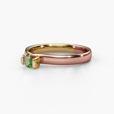 Deze ring heeft de naam Noor, deze ring uitgevoerd in 14 karaat rosé goud is gezet met toermalijn groen. Ben je op zoek naar een unieke rosé gouden ring met een moderne uitstraling? Dan is dit een mooie ring, die je zelf naar jouw of haar smaak verder kunt aanpassen. Perfect voor de eigentijdse, moderne vrouw! In deze elegante ring is een prachtige toermalijn groen verwerkt. Deze is zorgvuldig geselecteerd, want op jouw ring mag alleen de mooiste edelsteen schitteren. Onze goudsmid vervaardigt jouw ring in ons eigen atelier, en plaatst de toermalijn groen met uiterste precisie in de ring. Vervolgens wordt deze bijgewerkt en gepolijst totdat het resultaat zichtbaar is: de perfecte ring!Ben je gebonden aan een bepaald budget? Neem gerust contact met ons op, we adviseren graag over alle mogelijkheden. Sowieso leveren wij alle ringen tegen een prijs die je nergens anders tegen komt, doordat we de ring pas vervaardigen wanneer je deze besteld. Hierdoor kunnen wij je een beste prijs garantie geven.Elke dag worden nieuwe ring ontwerpen toegevoegd aan de site door ons team van talentvolle en gepassioneerde ontwerpers. Hierbij wordt ernaar gestreefd om een zo gevarieerd mogelijke collectie aan te bieden. Heb je bepaalde ideeën voor een ring, neem dan eens contact op voor een offerte. Wij doen je een aanbod wat betreft prijs en kwaliteit waar je geen nee tegen zult kunnen zeggen.Om het voor jou makkelijker te maken kun je ieder besteld sieraad binnen 30 dagen na aflevering eenvoudig weer retour sturen. We zijn benieuwd hoe je jouw Noor ring gaat personaliseren. Is iets je niet geheel duidelijk, dan kun je natuurlijk altijd contact opnemen. We helpen je graag!