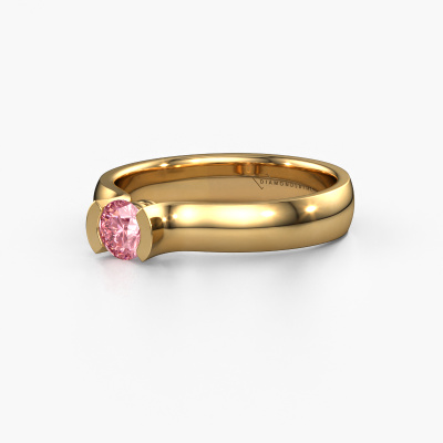 Deze ring heeft de naam Ophelia, deze ring uitgevoerd in 14 karaat goud is gezet met roze lab grown diamant ter grootte van 4.2 mm. Ben je op zoek naar een unieke gouden ring met een moderne uitstraling? Dan is dit een mooie ring, die je zelf naar jouw of haar smaak verder kunt aanpassen. Perfect voor de eigentijdse, moderne vrouw! In deze betaalbare ring is prachtige roze lab grown diamant verwerkt. Deze is zorgvuldig geselecteerd, want op jouw ring mag alleen de mooiste edelsteen schitteren. Onze goudsmid vervaardigt jouw ring in ons eigen atelier, en plaatst de roze lab grown diamant met uiterste precisie in de ring. Vervolgens wordt deze bijgewerkt en gepolijst totdat het resultaat zichtbaar is: de perfecte ring!