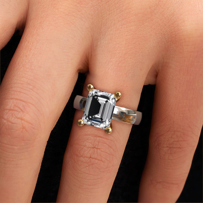 Wil je een mooie, edelstenen ring met een enkele edelsteen als eyecatcher? Wat denk je dan van deze Clelia EME ring? De Clelia EME ring zie je hier afgebeeld in witgoud met een prachtige 10x8 mm smaragd geslepen custom diamant. De custom diamant wordt met zeer zorgvuldig uitgezocht door onze leveranciers van custom diamanten, en daarna volgens het oude ambacht door de goudsmid geplaatst in de ring. Deze wordt tot in het kleinste detail afgewerkt en gepolijst totdat een unieke ring is ontstaan met een prachtige custom diamant. Speciaal voor jou vervaardigd! De Clelia EME is speciaal voor jou gemaakt, met aandacht voor detail en design.Het mooiste cadeau wat je kunt geven, is een zelfontworpen moderne ring. Ons team van gepassioneerde goudsmeden voegt iedere dag de mooiste nieuwe ontwerpen toe. En elk ontwerp kun je naar jouw wens aanpassen. Zo heb je de keuze welk edelmetaal gebruikt wordt, en kun je de kleur kiezen van de edelstenen. Zo wordt jouw moderne Clelia EME ring ontwerp geheel uniek!Onze goudsmeden vervaardigen pas je ring, zodra je deze besteld hebt. We hebben geen voorraden. Het voordeel hiervan is dat we de voorraad niet door hoeven te berekenen in de prijs, en wij daardoor sieraden kunnen leveren tegen een bijzonder lage prijs.Om het voor jou makkelijker te maken kun je ieder besteld sieraad binnen 30 dagen na aflevering eenvoudig weer retour sturen. Heb je een vraag, kijk dan eens bij onze veelgestelde vragen. Kom je er niet uit met de configurator, of heb je specifieke wensen voor jouw persoonlijke Clelia EME ring, aarzel dan niet om contact met ons op te nemen!