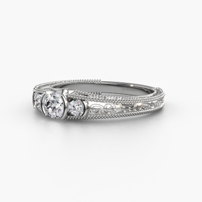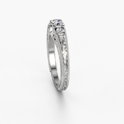 Deze promise ring heeft de naam Tasia. Deze filigraan promise ring uitgevoerd in 14 karaat witgoud is gezet met 0.42 crt diamant. Heeft jouw vriendin een zwak voor vintage? Dan kun je er vrijwel zeker van zijn dat deze witgouden promise ring helemaal bij haar stijl zal passen! Een nieuw model, gebaseerd op vintage motieven. Ietwat dromerig, een prachtig ontwerp! Zeker als je deze nog verder aangepast naar jullie smaak. In deze vintage 3 steens promise ring zijn prachtige diamanten verwerkt. Zoals je ziet kun je zelf voor een edelsteen kiezen die jij bij je vriendin vindt passen. Iedere edelsteen wordt zorgvuldig geselecteerd bij onze handelaren wereldwijd, onze goudsmid wil alleen de mooiste edelstenen op een sieraad verwerken. Het is immers de kroon op zijn werk! Ieder juweel wordt met passie en liefde gemaakt door één van onze meestergoudsmeden.Door het gebruik van de modernste technieken, gecombineerd met ambachtelijk vakmanschap kunnen wij alle promise ringen zelf in ons atelier maken. Ieder sieraad wordt pas gemaakt nadat deze besteld is. Dit heeft als bijkomend voordeel dat we kunnen leveren tegen een prijs die je nergens anders tegenkomt.Ons team is iedere dag weer bezig om nieuwe ontwerpen toe te voegen, in samenwerking met onze designers en goudsmeden wordt gekeken hoe we tot het mooiste ontwerp kunnen komen. Wij doen ons best om tot een zo gevarieerd mogelijk aanbod te komen. Wellicht heb je zelf al een mooi idee van een sieraad dat je ooit wel eens gezien hebt. Neem dan eens vrijblijvend contact met ons op. Wij maken een offerte voor je op waarbij wij vrij zeker zijn dat we wat betreft kwaliteit en prijs jou versteld zullen laten staan.Om het voor jou makkelijker te maken kun je ieder besteld sieraad binnen 30 dagen na aflevering eenvoudig weer retour sturen.