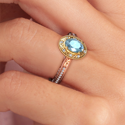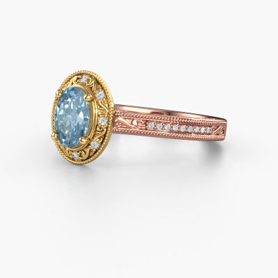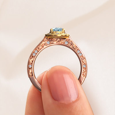 Deze verlovingsring heeft de naam Alice OVL. Deze verlovingsring uitgevoerd in 14 karaat rosé goud is gezet met 7x5 mm blauwe lab grown diamant. Wat maakt jullie relatie uniek? Wat is het, dat jij haar wilt gaan vragen om jouw vrouw te worden? Die unieke band die jullie samen hebben, kun je laten weerspiegelen in een unieke ring. Een unieke halo verlovingsring die alleen voor haar vervaardigd is. En daarom past deze vintage verlovingsring heel mooi bij haar. Ieder detail van deze filigraan rosé gouden verlovingsring met blauwe lab grown diamant wordt met de hand samengesteld, bijgewerkt en gepolijst door onze goudsmid in het atelier beneden. Een prachtige verlovingsring is het uiteindelijk resultaat, uniek en perfect gesmeed tot in de kleinste details! Dat is waar onze goudsmeden absoluut voor gaan! Dit sieraad wordt met passie en liefde gemaakt door één van onze meestergoudsmeden.Door onze modernste technieken kunnen wij met uiterste precisie prachtige sieraden te ontwerpen en voor jou personaliseren in de hoogste juwelierskwaliteit. Tegelijkertijd zijn onze verlovingsringen altijd 30% goedkoper dan bij een andere juwelier. Dit komt doordat alle verlovingsringen pas vervaardigd worden op het moment dat deze besteld wordt en we daardoor geen dure voorraden hoeven te hanteren. Mocht je aan een bepaald budget gebonden zijn, kunnen we je graag adviseren welke combinatie je het beste kunt kiezen.Iedere dag is ons team van goudsmeden en sieradenontwerpers aan het werk om nieuwe sieraden te ontwerpen. Het kan zijn dat je ergens een mooie verlovingsring gezien hebt en deze graag zou laten verwerken tot jouw unieke ring. Neem in dat geval contact met ons op en we zullen je een aanbod doen, waar je vrijwel zeker verwonderd zult zijn over de prijs en de kwaliteit.Om het voor jou makkelijker te maken kun je ieder besteld sieraad binnen 30 dagen na aflevering eenvoudig weer retour sturen.