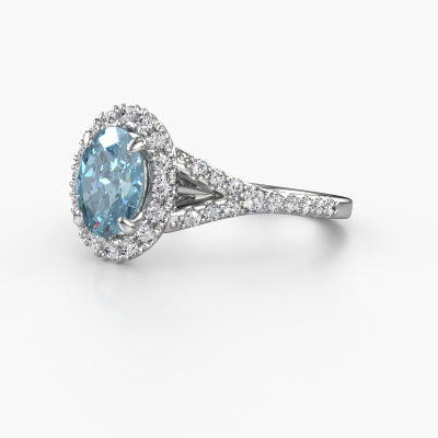 Bovenstaande verlovingsring heeft de naam Kimber OVL. Dit type verlovingsring noemen we een pavé solitaire verlovingsring omdat hij een enkele middensteen heeft waarbij de banden van de verlovingsring ook volgezet zijn. De verlovingsring is uitgevoerd in de combinatie platina met platina en heeft als middensteen een ovale blauwe lab grown diamant ter grootte van 8x6 mm en in de zijbanden zijn lab grown diamanten gezet. Ieder juweel wordt met passie en liefde gemaakt door één van onze meestergoudsmeden.Deze exclusieve platina pavé solitaire verlovingsring heeft een schitterende ovale blauwe lab grown diamant als centersteen, waarbij in de band nog meer blauwe lab grown diamanten zijn gezet om de middensteen nog meer te accentueren. Doordat de zetting van de pootjes om de blauwe lab grown diamant open is, vangt de blauwe lab grown diamant het licht van alle kanten op en schittert hierdoor optimaal. Hierboven kun je zien hoe onze goudsmid de verlovingsring heel precies tot in de kleinste details heeft bewerkt, zodat de wat hoger gelegen blauwe lab grown diamant een echte eyecatcher is. Wat een prachtige verlovingsring om te geven bij je aanzoek aan de liefde van jouw leven, aan jouw stralende middelpunt!Door het gebruik van de modernste technieken, gecombineerd met ambachtelijk vakmanschap kunnen wij alle verlovingsringen zelf in ons atelier maken. Ieder sieraad wordt pas gemaakt nadat deze besteld is. Dit heeft als bijkomend voordeel dat we kunnen leveren tegen een prijs die je nergens anders tegenkomt.Ons team is iedere dag weer bezig om nieuwe ontwerpen toe te voegen, in samenwerking met onze designers en goudsmeden wordt gekeken hoe we tot het mooiste ontwerp kunnen komen. Wij doen ons best om tot een zo gevarieerd mogelijk aanbod te komen. Wellicht heb je zelf al een mooi idee van een sieraad dat je ooit wel eens gezien hebt. Neem dan eens vrijblijvend contact met ons op. Wij maken een offerte voor je op waarbij wij vrij zeker zijn dat we wat betreft kwaliteit en prijs jou versteld zullen laten staan.Om het voor jou makkelijker te maken kun je ieder besteld sieraad binnen 30 dagen na aflevering eenvoudig weer retour sturen.