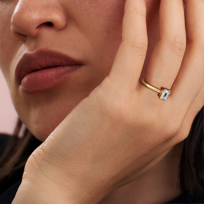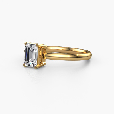 Bovenstaande verlovingsring heeft de naam Denita 1 EME, dit type verlovingsring noemen we een solitaire ring omdat hij een enkele edelsteen bevat. De verlovingsring is uitgevoerd in 14 karaat goud en heeft een smaragd geslepen diamant ter grootte van 0.90 crt. Het leuke van onze configurator is dat je zelf je sieraad kunt samenstellen tot een eigen persoonlijk sieraad. Deze solitaire ring is uitgevoerd in de edelmetaal combinatie goud met goud, maar u kunt dus ook uit andere kleuren kiezen. Ieder sieraad is gemaakt door een team van gedreven goudsmeden en designers. Hierdoor zal dit unieke pronkstuk een echte eyecatcher zijn.De solitaire verlovingsring is een bijzondere verlovingsring. Juist doordat de chatonzetting open is, creëert de lichtinval een schitterend effect op de edelsteen. Omdat de gekozen edelsteen hoog op de verlovingsring geplaatst wordt, wordt deze eigentijdse verlovingsring een prachtige eyecatcher. Met veel zorgvuldigheid vervaardigen wij alle details in deze solitaire verlovingsring met de hand, zodat jij binnenkort je aanzoek kunt bekronen met een unieke ring, speciaal voor de liefde van jouw leven!Door het gebruik van de modernste technieken, gecombineerd met ambachtelijk vakmanschap kunnen wij alle verlovingsringen zelf in ons atelier maken. Ieder sieraad wordt pas gemaakt nadat deze besteld is. Dit heeft als bijkomend voordeel dat we kunnen leveren tegen een prijs die je nergens anders tegenkomt.Iedere dag is ons team van goudsmeden en sieradenontwerpers aan het werk om nieuwe sieraden te ontwerpen. Het kan zijn dat je ergens een mooie verlovingsring gezien hebt en deze graag zou laten verwerken tot jouw unieke ring. Neem in dat geval contact met ons op en we zullen je een aanbod doen, waar je vrijwel zeker verwonderd zult zijn over de prijs en de kwaliteit.Om het voor jou makkelijker te maken kun je ieder besteld sieraad binnen 30 dagen na aflevering eenvoudig weer retour sturen.