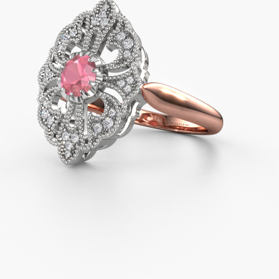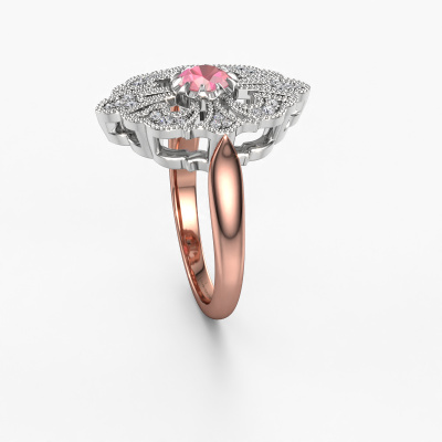 Deze verlovingsring heeft de naam Naida. Deze gracieuze verlovingsring uitgevoerd in 14 karaat rosé goud is gezet met 5 mm toermalijn pink. Heeft jouw vriendin een zwak voor vintage? Dan kun je er vrijwel zeker van zijn dat deze rosé gouden verlovingsring helemaal bij haar stijl zal passen! Een nieuw model, gebaseerd op vintage motieven. Ietwat dromerig, een prachtig ontwerp! Zeker als je deze nog verder aangepast naar jullie smaak. In deze vintage entourage verlovingsring zijn prachtige toermalijn pink verwerkt. Zoals je ziet kun je zelf voor een edelsteen kiezen die jij bij je vriendin vindt passen. Iedere edelsteen wordt zorgvuldig geselecteerd bij onze handelaren wereldwijd, onze goudsmid wil alleen de mooiste edelstenen op een sieraad verwerken. Het is immers de kroon op zijn werk! Ieder juweel wordt speciaal voor jou gemaakt door onze meester goudsmeden in ons eigen atelier.Door het gebruik van de modernste technieken, gecombineerd met ambachtelijk vakmanschap kunnen wij alle verlovingsringen zelf in ons atelier maken. Ieder sieraad wordt pas gemaakt nadat deze besteld is. Dit heeft als bijkomend voordeel dat we kunnen leveren tegen een prijs die je nergens anders tegenkomt.Heb je zelf een speciale ring in gedachten, die je wellicht ergens gezien hebt? Je kunt je ideeën altijd met ons bespreken, wij zetten graag jouw ontwerp om tot een unieke verlovingsring. Het ontwerp kun je volgen, omdat wij met 3D tekeningen werken. Hierdoor krijg je al een realistische indruk van hoe jouw ontwerp er in het echt uit komt te zien. Wij sturen je graag een vrijblijvende offerte, waarbij je ongetwijfeld verwonderd zult zijn over de prijs in combinatie met de uitstekende kwaliteit die we aanbieden.Om het voor jou makkelijker te maken kun je ieder besteld sieraad binnen 30 dagen na aflevering eenvoudig weer retour sturen.