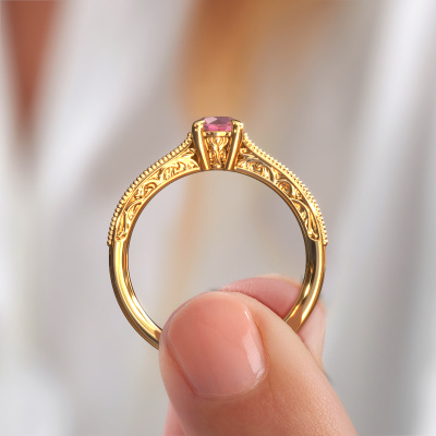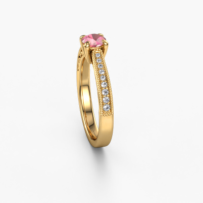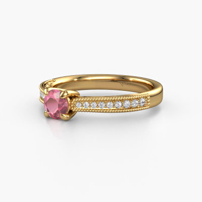 Deze belofte ring heeft de naam Shonta RND. Deze belofte ring uitgevoerd in 14 karaat goud is gezet met 4.7 mm tourmalijn pink. Deze filigraan gouden belofte ring is een meesterwerkje op zich. Een prachtig ontwerp van verfijnde draadjes die een uniek geheel vormen. Tegelijkertijd een mooie uitdaging voor onze gepassioneerd goudsmeden! Met veel toewijding, geduld en uiterste precisie vervaardigen zij deze belofte ring speciaal voor jouw geliefde. Alles wordt met de hand gemaakt, waardoor ieder draadje tot in het kleinste detail perfect bewerkt kan worden. Een lang proces van smeden, bewerken en polijsten, totdat de meestersmid de belofte ring in het licht houdt en tevreden is... een perfecte belofte ring waar hij echt trots op is. Daarom is deze vintage filigraan belofte ring ook een bijzondere belofte ring om te schenken aan de liefde van je leven! Die ene persoon ga jij binnenkort vragen, en alleen voor deze persoon is deze unieke belofte ring voor vervaardigd! Prachtig toch? Dit sieraad wordt speciaal voor jou gemaakt door onze meester goudsmeden in ons eigen atelier.Door onze modernste technieken kunnen wij met uiterste precisie prachtige sieraden te ontwerpen en voor jou personaliseren in de hoogste juwelierskwaliteit. Tegelijkertijd zijn onze belofte ringen altijd 30% goedkoper dan bij een andere juwelier. Dit komt doordat alle belofte ringen pas vervaardigd worden op het moment dat deze besteld wordt en we daardoor geen dure voorraden hoeven te hanteren. Mocht je aan een bepaald budget gebonden zijn, kunnen we je graag adviseren welke combinatie je het beste kunt kiezen.Iedere dag is ons team van goudsmeden en sieradenontwerpers aan het werk om nieuwe sieraden te ontwerpen. Het kan zijn dat je ergens een mooie belofte ring gezien hebt en deze graag zou laten verwerken tot jouw unieke ring. Neem in dat geval contact met ons op en we zullen je een aanbod doen, waar je vrijwel zeker verwonderd zult zijn over de prijs en de kwaliteit.Om het voor jou makkelijker te maken kun je ieder besteld sieraad binnen 30 dagen na aflevering eenvoudig weer retour sturen.