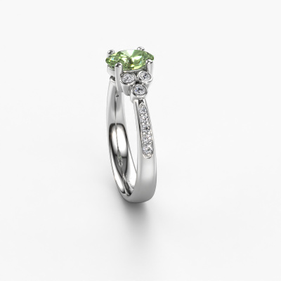 De naam van deze verlovingsring is de Lucy 2. Hij is gemaakt van platina en gezet met 7x5 mm groene lab grown diamant. Hoe zou je de stijl omschrijven van de liefde van jouw leven? Houdt zij van iets dat net een beetje anders is dan anders? Deze gracieuze platina verlovingsring is een mooie ring, die je zelf naar jouw of haar smaak verder kunt aanpassen. In deze klassieke verlovingsring is groene lab grown diamant verwerkt. Deze groene lab grown diamanten zijn zorgvuldig geselecteerd, want wij vinden dat op jouw verlovingsring alleen de mooiste edelsteen mag schitteren, toch? Dit sieraad is gemaakt om aan jouw vinger te stralen, ieder sieraad wordt met liefde door onze goudsmeden met de hand gemaakt.Door onze modernste technieken kunnen wij met uiterste precisie prachtige sieraden te ontwerpen en voor jou personaliseren in de hoogste juwelierskwaliteit. Tegelijkertijd zijn onze verlovingsringen altijd 30% goedkoper dan bij een andere juwelier. Dit komt doordat alle verlovingsringen pas vervaardigd worden op het moment dat deze besteld wordt en we daardoor geen dure voorraden hoeven te hanteren. Mocht je aan een bepaald budget gebonden zijn, kunnen we je graag adviseren welke combinatie je het beste kunt kiezen.Heb je zelf een speciale ring in gedachten, die je wellicht ergens gezien hebt? Je kunt je ideeën altijd met ons bespreken, wij zetten graag jouw ontwerp om tot een unieke verlovingsring. Het ontwerp kun je volgen, omdat wij met 3D tekeningen werken. Hierdoor krijg je al een realistische indruk van hoe jouw ontwerp er in het echt uit komt te zien. Wij sturen je graag een vrijblijvende offerte, waarbij je ongetwijfeld verwonderd zult zijn over de prijs in combinatie met de uitstekende kwaliteit die we aanbieden.Om het voor jou makkelijker te maken kun je ieder besteld sieraad binnen 30 dagen na aflevering eenvoudig weer retour sturen.