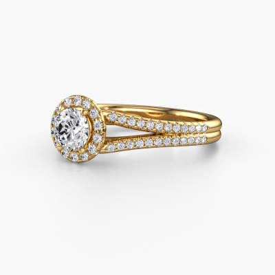 Deze verlovingsring heeft de naam Verla rnd 2. Deze gespleten banden verlovingsring uitgevoerd, in 14 karaat goud is gezet met 0.98 crt diamant. Deze exclusieve gouden halo verlovingsring is een puur staaltje vakmanschap! Alle kleine details zijn door onze goudsmid met veel geduld en passie vervaardigd. Dit ambacht vraagt een deskundig oog en vaardige hand om deze verlovingsring met uiterste precisie samen te stellen. En dat is precies waar onze goudsmeden enthousiast van worden! De prachtige diamanten zijn op een bijzondere manier gezet, zodat deze nog beter tot zijn recht komen. Dit geeft de verlovingsring extra allure. De verlovingsring is al uniek door zijn natuurlijke edelsteen, die we speciaal geselecteerd hebben voor deze ring. Daarnaast kun je zelf de samenstelling kiezen van het edelmetaal, waardoor je uiteindelijk een unieke verlovingsring hebt gecreëerd voor de meest exclusieve vrouw in je leven! Dit sieraad is speciaal voor jou gemaakt, met aandacht voor detail en design.Omdat wij zelf alle verlovingsring maken en direct aan jou leveren kunnen wij je een verlovingsring leveren tegen een prijs die je nergens anders zult tegenkomen. Een ring wordt pas gemaakt als we een bestelling krijgen, hierdoor hebben wij geen dure voorraden en kunnen wij je de beste prijs garanderen. Wij begrijpen dat het kopen van een verlovingsring online spannend is en willen daarom je zoveel mogelijk informeren over alle specifieke eigenschappen van de ring die jij koopt.Ons team is iedere dag weer bezig om nieuwe ontwerpen toe te voegen, in samenwerking met onze designers en goudsmeden wordt gekeken hoe we tot het mooiste ontwerp kunnen komen. Wij doen ons best om tot een zo gevarieerd mogelijk aanbod te komen. Wellicht heb je zelf al een mooi idee van een sieraad dat je ooit wel eens gezien hebt. Neem dan eens vrijblijvend contact met ons op. Wij maken een offerte voor je op waarbij wij vrij zeker zijn dat we wat betreft kwaliteit en prijs jou versteld zullen laten staan.Om het voor jou makkelijker te maken kun je ieder besteld sieraad binnen 30 dagen na aflevering eenvoudig weer retour sturen.