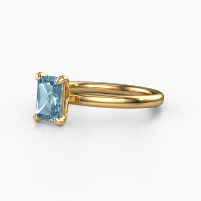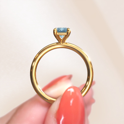 Bovenstaande verlovingsring heeft de naam Simone RAD 1. Dit type verlovingsring noemen we een solitaire verlovingsring omdat hij een enkele edelsteen bevat. De verlovingsring is uitgevoerd in 14 karaat goud en heeft een radiant blauwe lab grown diamant ter grootte van 7x5 mm. Deze schitterende klassieke gouden solitaire ring heeft een prachtige radiant blauwe lab grown diamant om je aanzoek heel speciaal te maken. De open chatonzetting zorgt voor een prachtige lichtinval op de diamant. Wist je dat de diamant bijvoorbeeld symbool staat voor eeuwige liefde en trouw? Juist daarom is het een prachtige edelsteen om in het middelpunt te stellen. Onze goudsmid plaatst met veel zorgvuldigheid de gekozen edelsteen hoog op de ring, waardoor het een echte eyecatcher is. Ieder juweel is gemaakt om aan jouw vinger te stralen, ieder sieraad wordt met liefde door onze goudsmeden met de hand gemaakt.Wellicht is het je opgevallen dat onze prijzen gemiddeld 30% lager liggen dan bij een andere juwelier. En dat terwijl de kwaliteit in de meeste gevallen nog beter is! Dit komt doordat onze goudsmeden je verlovingsring direct in ons eigen atelier vervaardigen. Hierdoor hoeven we geen dure voorraden te hanteren en kunnen we ieder gewenst detail direct op jouw verlovingsring aanbrengen.Ons team ontwerpt dagelijks nieuwe ringen in diverse stijlen. Heb je zelf een solitaire verlovingsring ergens gezien, die jij het liefst aan jouw geliefde zou willen geven? Je kunt altijd jouw ideeën en ontwerp met onze sieradenontwerpers bespreken, want wij zetten graag jouw ontwerp om tot een klassieke verlovingsring. Je kunt tijdens het ontwerpproces steeds meekijken, omdat het ontwerp in een zeer gedetailleerde 3D tekening wordt omgezet. Daarbij kun je een dummy bestellen van het uiteindelijke ontwerp. Een dummy is een kunststof ring, die precies dezelfde vormen heeft als jouw uiteindelijke ontwerp. Je kunt deze passen en zien of de ontworpen verlovingsring helemaal naar jouw wens is. Wij sturen je graag een vrijblijvende offerte, waarbij je ongetwijfeld versteld zult staan over de prijs en de kwaliteit van de ring en edelstenen.Om het voor jou makkelijker te maken kun je ieder besteld sieraad binnen 30 dagen na aflevering eenvoudig weer retour sturen.