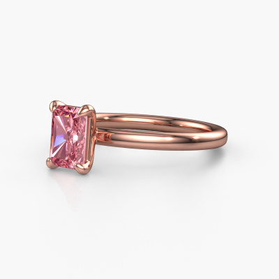 Bovenstaande verlovingsring heeft de naam Simone RAD 1. Dit type verlovingsring noemen we een solitaire verlovingsring omdat hij een enkele edelsteen bevat. De verlovingsring is uitgevoerd in 14 karaat rosé goud en heeft een radiant roze lab grown diamant ter grootte van 7x5 mm. Deze schitterende klassieke rosé gouden solitaire ring heeft een prachtige radiant roze lab grown diamant om je aanzoek heel speciaal te maken. De open chatonzetting zorgt voor een prachtige lichtinval op de diamant. Wist je dat de diamant bijvoorbeeld symbool staat voor eeuwige liefde en trouw? Juist daarom is het een prachtige edelsteen om in het middelpunt te stellen. Onze goudsmid plaatst met veel zorgvuldigheid de gekozen edelsteen hoog op de ring, waardoor het een echte eyecatcher is. Ieder juweel is gemaakt om aan jouw vinger te stralen, ieder sieraad wordt met liefde door onze goudsmeden met de hand gemaakt.Wellicht is het je opgevallen dat onze prijzen gemiddeld 30% lager liggen dan bij een andere juwelier. En dat terwijl de kwaliteit in de meeste gevallen nog beter is! Dit komt doordat onze goudsmeden je verlovingsring direct in ons eigen atelier vervaardigen. Hierdoor hoeven we geen dure voorraden te hanteren en kunnen we ieder gewenst detail direct op jouw verlovingsring aanbrengen.Ons team ontwerpt dagelijks nieuwe ringen in diverse stijlen. Heb je zelf een solitaire verlovingsring ergens gezien, die jij het liefst aan jouw geliefde zou willen geven? Je kunt altijd jouw ideeën en ontwerp met onze sieradenontwerpers bespreken, want wij zetten graag jouw ontwerp om tot een klassieke verlovingsring. Je kunt tijdens het ontwerpproces steeds meekijken, omdat het ontwerp in een zeer gedetailleerde 3D tekening wordt omgezet. Daarbij kun je een dummy bestellen van het uiteindelijke ontwerp. Een dummy is een kunststof ring, die precies dezelfde vormen heeft als jouw uiteindelijke ontwerp. Je kunt deze passen en zien of de ontworpen verlovingsring helemaal naar jouw wens is. Wij sturen je graag een vrijblijvende offerte, waarbij je ongetwijfeld versteld zult staan over de prijs en de kwaliteit van de ring en edelstenen.Om het voor jou makkelijker te maken kun je ieder besteld sieraad binnen 30 dagen na aflevering eenvoudig weer retour sturen.