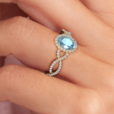 Deze verlovingsring heeft de naam Dionne ovl. Deze getordeerde verlovingsring uitgevoerd, in 14 karaat goud is gezet met 7x5 mm blauwe lab grown diamant. Deze exclusieve gouden pavé solitaire verlovingsring is een puur staaltje vakmanschap! Alle kleine details zijn door onze goudsmid met veel geduld en passie vervaardigd. Dit ambacht vraagt een deskundig oog en vaardige hand om deze verlovingsring met uiterste precisie samen te stellen. En dat is precies waar onze goudsmeden enthousiast van worden! De prachtige blauwe lab grown diamanten zijn op een bijzondere manier gezet, zodat deze nog beter tot zijn recht komen. Dit geeft de verlovingsring extra allure. De verlovingsring is al uniek door zijn natuurlijke edelsteen, die we speciaal geselecteerd hebben voor deze ring. Daarnaast kun je zelf de samenstelling kiezen van het edelmetaal, waardoor je uiteindelijk een unieke verlovingsring hebt gecreëerd voor de meest exclusieve vrouw in je leven! Dit sieraad is uniek, doordat je deze ring geheel naar eigen wensen kunt samenstellen.Onze goudsmeden vervaardigen pas je Dionne ovl verlovingsring, zodra je deze besteld hebt. We hebben geen voorraden. Het voordeel hiervan is dat we de voorraad niet door hoeven te berekenen in de prijs, en kunnen daardoor sieraden leveren tegen een bijzonder lage prijs.Ons team ontwerpt dagelijks nieuwe ringen in diverse stijlen. Heb je zelf een pavé solitaire verlovingsring ergens gezien, die jij het liefst aan jouw geliefde zou willen geven? Je kunt altijd jouw ideeën en ontwerp met onze sieradenontwerpers bespreken, want wij zetten graag jouw ontwerp om tot een exclusieve verlovingsring. Je kunt tijdens het ontwerpproces steeds meekijken, omdat het ontwerp in een zeer gedetailleerde 3D tekening wordt omgezet. Daarbij kun je een dummy bestellen van het uiteindelijke ontwerp. Een dummy is een kunststof ring, die precies dezelfde vormen heeft als jouw uiteindelijke ontwerp. Je kunt deze passen en zien of de ontworpen verlovingsring helemaal naar jouw wens is. Wij sturen je graag een vrijblijvende offerte, waarbij je ongetwijfeld versteld zult staan over de prijs en de kwaliteit van de ring en edelstenen.Om het voor jou makkelijker te maken kun je ieder besteld sieraad binnen 30 dagen na aflevering eenvoudig weer retour sturen.