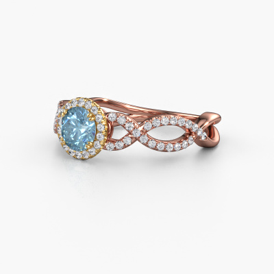 Bovenstaande verlovingsring heeft de naam Dionne rnd. Dit type verlovingsring noemen we een pavé solitaire verlovingsring omdat hij een enkele middensteen heeft waarbij de banden van de verlovingsring ook volgezet zijn. De verlovingsring is uitgevoerd in de combinatie 14 karaat rosé goud met goud en heeft als middensteen een ronde blauwe lab grown diamant ter grootte van 5 mm en in de zijbanden zijn diamanten gezet. Ieder juweel wordt speciaal voor jou gemaakt door onze meester goudsmeden in ons eigen atelier.Deze klassieke rosé gouden pavé solitaire verlovingsring heeft een schitterende ronde blauwe lab grown diamant als centersteen, waarbij in de band nog meer blauwe lab grown diamanten zijn gezet om de middensteen nog meer te accentueren. Doordat de zetting van de pootjes om de blauwe lab grown diamant open is, vangt de blauwe lab grown diamant het licht van alle kanten op en schittert hierdoor optimaal. Hierboven kun je zien hoe onze goudsmid de verlovingsring heel precies tot in de kleinste details heeft bewerkt, zodat de wat hoger gelegen blauwe lab grown diamant een echte eyecatcher is. Wat een prachtige verlovingsring om te geven bij je aanzoek aan de liefde van jouw leven, aan jouw stralende middelpunt!Omdat wij zelf alle verlovingsring maken en direct aan jou leveren kunnen wij je een verlovingsring leveren tegen een prijs die je nergens anders zult tegenkomen. Een ring wordt pas gemaakt als we een bestelling krijgen, hierdoor hebben wij geen dure voorraden en kunnen wij je de beste prijs garanderen. Wij begrijpen dat het kopen van een verlovingsring online spannend is en willen daarom je zoveel mogelijk informeren over alle specifieke eigenschappen van de ring die jij koopt.Heb je zelf een speciale ring in gedachten, die je wellicht ergens gezien hebt? Je kunt je ideeën altijd met ons bespreken, wij zetten graag jouw ontwerp om tot een unieke verlovingsring. Het ontwerp kun je volgen, omdat wij met 3D tekeningen werken. Hierdoor krijg je al een realistische indruk van hoe jouw ontwerp er in het echt uit komt te zien. Wij sturen je graag een vrijblijvende offerte, waarbij je ongetwijfeld verwonderd zult zijn over de prijs in combinatie met de uitstekende kwaliteit die we aanbieden.Om het voor jou makkelijker te maken kun je ieder besteld sieraad binnen 30 dagen na aflevering eenvoudig weer retour sturen.