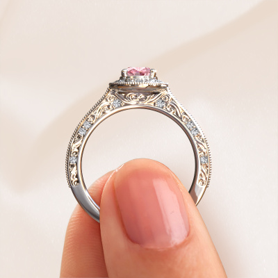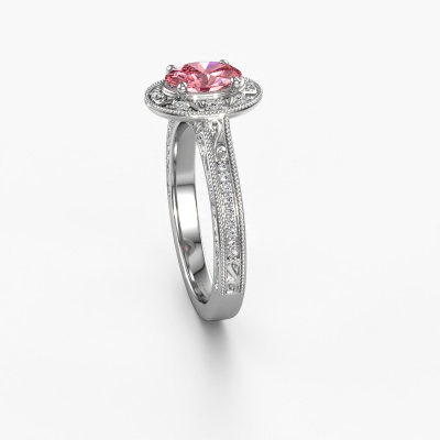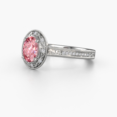 Deze verlovingsring heeft de naam Alice OVL. Deze verlovingsring uitgevoerd in platina is gezet met 7x5 mm roze lab grown diamant. Wat maakt jullie relatie uniek? Wat is het, dat jij haar wilt gaan vragen om jouw vrouw te worden? Die unieke band die jullie samen hebben, kun je laten weerspiegelen in een unieke ring. Een unieke halo verlovingsring die alleen voor haar vervaardigd is. En daarom past deze vintage verlovingsring heel mooi bij haar. Ieder detail van deze filigraan platina verlovingsring met roze lab grown diamant wordt met de hand samengesteld, bijgewerkt en gepolijst door onze goudsmid in het atelier beneden. Een prachtige verlovingsring is het uiteindelijk resultaat, uniek en perfect gesmeed tot in de kleinste details! Dat is waar onze goudsmeden absoluut voor gaan! Dit sieraad wordt met passie en liefde gemaakt door één van onze meestergoudsmeden.Door onze modernste technieken kunnen wij met uiterste precisie prachtige sieraden te ontwerpen en voor jou personaliseren in de hoogste juwelierskwaliteit. Tegelijkertijd zijn onze verlovingsringen altijd 30% goedkoper dan bij een andere juwelier. Dit komt doordat alle verlovingsringen pas vervaardigd worden op het moment dat deze besteld wordt en we daardoor geen dure voorraden hoeven te hanteren. Mocht je aan een bepaald budget gebonden zijn, kunnen we je graag adviseren welke combinatie je het beste kunt kiezen.Iedere dag is ons team van goudsmeden en sieradenontwerpers aan het werk om nieuwe sieraden te ontwerpen. Het kan zijn dat je ergens een mooie verlovingsring gezien hebt en deze graag zou laten verwerken tot jouw unieke ring. Neem in dat geval contact met ons op en we zullen je een aanbod doen, waar je vrijwel zeker verwonderd zult zijn over de prijs en de kwaliteit.Om het voor jou makkelijker te maken kun je ieder besteld sieraad binnen 30 dagen na aflevering eenvoudig weer retour sturen.
