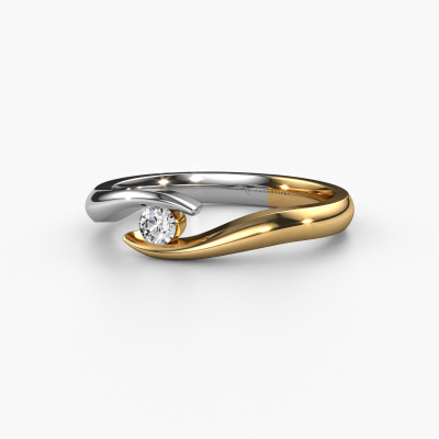 Deze aanzoeksring heeft de naam Alaina. Hij is uitgevoerd in 14 karaat goud en gezet met diamant. Ga jij graag mee met eigentijdse trends? En wil je dit ook terug laten komen in je keuze voor een unieke aanzoeksring? Deze sierlijke aanzoeksring is een bijzondere ring, die je zelf naar jouw of haar stijl verder kunt aanpassen. In deze moderne gouden aanzoeksring is diamant verwerkt. Deze diamanten zijn speciaal voor deze aanzoeksring geselecteerd, om het mooiste effect te creëren. Onze goudsmid vervaardigt jouw aanzoeksring in ons eigen atelier, en plaatst de diamant heel zorgvuldig in de ring. Vervolgens wordt deze bijgewerkt en gepolijst totdat de perfecte aanzoeksring is ontstaan, perfect voor de liefde van jouw leven! Dit sieraad is uniek, doordat je deze ring geheel naar eigen wensen kunt samenstellen.Door onze modernste technieken kunnen wij met uiterste precisie prachtige sieraden te ontwerpen en voor jou personaliseren in de hoogste juwelierskwaliteit. Tegelijkertijd zijn onze aanzoeksringen altijd 30% goedkoper dan bij een andere juwelier. Dit komt doordat alle aanzoeksringen pas vervaardigd worden op het moment dat deze besteld wordt en we daardoor geen dure voorraden hoeven te hanteren. Mocht je aan een bepaald budget gebonden zijn, kunnen we je graag adviseren welke combinatie je het beste kunt kiezen.Ons team is iedere dag weer bezig om nieuwe ontwerpen toe te voegen, in samenwerking met onze designers en goudsmeden wordt gekeken hoe we tot het mooiste ontwerp kunnen komen. Wij doen ons best om tot een zo gevarieerd mogelijk aanbod te komen. Wellicht heb je zelf al een mooi idee van een sieraad dat je ooit wel eens gezien hebt. Neem dan eens vrijblijvend contact met ons op. Wij maken een offerte voor je op waarbij wij vrij zeker zijn dat we wat betreft kwaliteit en prijs jou versteld zullen laten staan.Om het voor jou makkelijker te maken kun je ieder besteld sieraad binnen 30 dagen na aflevering eenvoudig weer retour sturen.