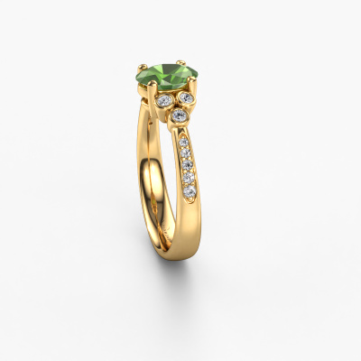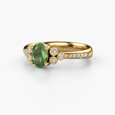 De naam van deze verlovingsring is de Lucy 2. Hij is gemaakt van 14 karaat goud en gezet met 7x5 mm toermalijn groen. Hoe zou je de stijl omschrijven van de liefde van jouw leven? Houdt zij van iets dat net een beetje anders is dan anders? Deze gracieuze gouden verlovingsring is een mooie ring, die je zelf naar jouw of haar smaak verder kunt aanpassen. In deze klassieke verlovingsring is toermalijn groen verwerkt. Deze toermalijn groen zijn zorgvuldig geselecteerd, want wij vinden dat op jouw verlovingsring alleen de mooiste edelsteen mag schitteren, toch? Dit sieraad is gemaakt om aan jouw vinger te stralen, ieder sieraad wordt met liefde door onze goudsmeden met de hand gemaakt.Door onze modernste technieken kunnen wij met uiterste precisie prachtige sieraden te ontwerpen en voor jou personaliseren in de hoogste juwelierskwaliteit. Tegelijkertijd zijn onze verlovingsringen altijd 30% goedkoper dan bij een andere juwelier. Dit komt doordat alle verlovingsringen pas vervaardigd worden op het moment dat deze besteld wordt en we daardoor geen dure voorraden hoeven te hanteren. Mocht je aan een bepaald budget gebonden zijn, kunnen we je graag adviseren welke combinatie je het beste kunt kiezen.Heb je zelf een speciale ring in gedachten, die je wellicht ergens gezien hebt? Je kunt je ideeën altijd met ons bespreken, wij zetten graag jouw ontwerp om tot een unieke verlovingsring. Het ontwerp kun je volgen, omdat wij met 3D tekeningen werken. Hierdoor krijg je al een realistische indruk van hoe jouw ontwerp er in het echt uit komt te zien. Wij sturen je graag een vrijblijvende offerte, waarbij je ongetwijfeld verwonderd zult zijn over de prijs in combinatie met de uitstekende kwaliteit die we aanbieden.Om het voor jou makkelijker te maken kun je ieder besteld sieraad binnen 30 dagen na aflevering eenvoudig weer retour sturen.