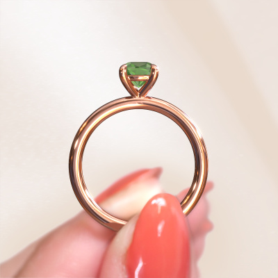 Voor jou is er maar één! Zij is zeldzaam, uniek en puur... Deze bijzondere modieuze rosé gouden solitaire ring met toermalijn groen onderstreept deze karaktereigenschappen heel prachtig. Deze toermalijn groen is zorgvuldig geselecteerd door onze goudsmeden, en is net als je geliefde uniek. Wat is mooier om haar dit symbool te schenken bij jouw aanzoek? Bovenstaande verlovingsring heeft de naam Simone CUS 1, dit type verlovingsring noemen we een solitaire ring omdat hij een enkele edelsteen bevat. De verlovingsring is uitgevoerd in 14 karaat rosé goud en heeft een cushion toermalijn groen ter grootte van 5.5 mm. Ieder sieraad is gemaakt door een team van gedreven goudsmeden en designers. Hierdoor zal dit unieke pronkstuk een echte eyecatcher zijn.Door het gebruik van de modernste technieken, gecombineerd met ambachtelijk vakmanschap kunnen wij alle verlovingsringen zelf in ons atelier maken. Ieder sieraad wordt pas gemaakt nadat deze besteld is. Dit heeft als bijkomend voordeel dat we kunnen leveren tegen een prijs die je nergens anders tegenkomt.Iedere dag is ons team van goudsmeden en sieradenontwerpers aan het werk om nieuwe sieraden te ontwerpen. Het kan zijn dat je ergens een mooie verlovingsring gezien hebt en deze graag zou laten verwerken tot jouw unieke ring. Neem in dat geval contact met ons op en we zullen je een aanbod doen, waar je vrijwel zeker verwonderd zult zijn over de prijs en de kwaliteit.Om het voor jou makkelijker te maken kun je ieder besteld sieraad binnen 30 dagen na aflevering eenvoudig weer retour sturen.