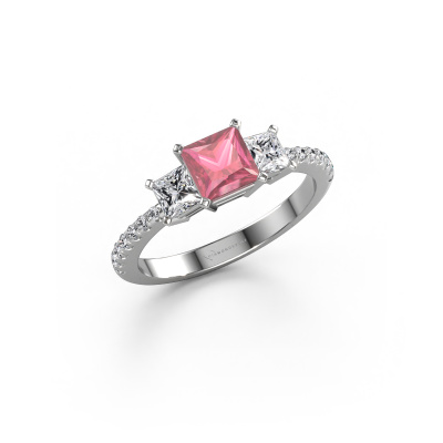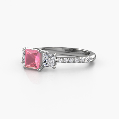 Deze verlovingsring heeft de naam Dorla. Deze verlovingsring uitgevoerd in platina is gezet met 5 mm tourmalijn pink. Wat maakt jullie relatie uniek? Wat is het, dat jij haar wilt gaan vragen om jouw vrouw te worden? Die unieke band die jullie samen hebben, kun je laten weerspiegelen in een unieke ring. Een unieke 3 steens verlovingsring die alleen voor haar vervaardigd is. En daarom past deze exclusieve verlovingsring heel mooi bij haar. Ieder detail van deze micropavé platina verlovingsring met tourmalijn pink wordt met de hand samengesteld, bijgewerkt en gepolijst door onze goudsmid in het atelier beneden. Een prachtige verlovingsring is het uiteindelijk resultaat, uniek en perfect gesmeed tot in de kleinste details! Dat is waar onze goudsmeden absoluut voor gaan! Dit sieraad is uniek, doordat je deze ring geheel naar eigen wensen kunt samenstellen.Wist je dat we een beste prijs garantie geven voor jouw verlovingsring? Dit is mogelijk omdat al onze sieraden met de hand gemaakt worden in ons eigen atelier. We hebben geen dure voorraden, en we maken pas je verlovingsring op het moment dat je besteld hebt. Doordat we de hele productie zelf in de hand hebben, kunnen wij je goed informeren over alle eigenschappen van deze ring. Juist omdat het kopen van een verlovingsring online spannend is, begrijpen wij dat het fijn is om alle kenmerken te weten van jouw ring.Heb je zelf een speciale ring in gedachten, die je wellicht ergens gezien hebt? Je kunt je ideeën altijd met ons bespreken, wij zetten graag jouw ontwerp om tot een unieke verlovingsring. Het ontwerp kun je volgen, omdat wij met 3D tekeningen werken. Hierdoor krijg je al een realistische indruk van hoe jouw ontwerp er in het echt uit komt te zien. Wij sturen je graag een vrijblijvende offerte, waarbij je ongetwijfeld verwonderd zult zijn over de prijs in combinatie met de uitstekende kwaliteit die we aanbieden.Om het voor jou makkelijker te maken kun je ieder besteld sieraad binnen 30 dagen na aflevering eenvoudig weer retour sturen.