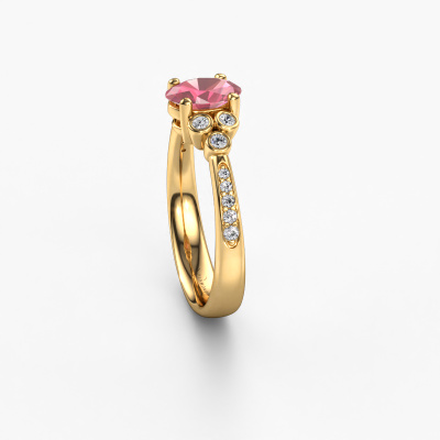 De naam van deze verlovingsring is de Lucy 2. Hij is gemaakt van 14 karaat goud en gezet met 7x5 mm tourmalijn pink. Hoe zou je de stijl omschrijven van de liefde van jouw leven? Houdt zij van iets dat net een beetje anders is dan anders? Deze gracieuze gouden verlovingsring is een mooie ring, die je zelf naar jouw of haar smaak verder kunt aanpassen. In deze klassieke verlovingsring is tourmalijn pink verwerkt. Deze tourmalijn pink zijn zorgvuldig geselecteerd, want wij vinden dat op jouw verlovingsring alleen de mooiste edelsteen mag schitteren, toch? Dit sieraad is gemaakt om aan jouw vinger te stralen, ieder sieraad wordt met liefde door onze goudsmeden met de hand gemaakt.Door onze modernste technieken kunnen wij met uiterste precisie prachtige sieraden te ontwerpen en voor jou personaliseren in de hoogste juwelierskwaliteit. Tegelijkertijd zijn onze verlovingsringen altijd 30% goedkoper dan bij een andere juwelier. Dit komt doordat alle verlovingsringen pas vervaardigd worden op het moment dat deze besteld wordt en we daardoor geen dure voorraden hoeven te hanteren. Mocht je aan een bepaald budget gebonden zijn, kunnen we je graag adviseren welke combinatie je het beste kunt kiezen.Heb je zelf een speciale ring in gedachten, die je wellicht ergens gezien hebt? Je kunt je ideeën altijd met ons bespreken, wij zetten graag jouw ontwerp om tot een unieke verlovingsring. Het ontwerp kun je volgen, omdat wij met 3D tekeningen werken. Hierdoor krijg je al een realistische indruk van hoe jouw ontwerp er in het echt uit komt te zien. Wij sturen je graag een vrijblijvende offerte, waarbij je ongetwijfeld verwonderd zult zijn over de prijs in combinatie met de uitstekende kwaliteit die we aanbieden.Om het voor jou makkelijker te maken kun je ieder besteld sieraad binnen 30 dagen na aflevering eenvoudig weer retour sturen.