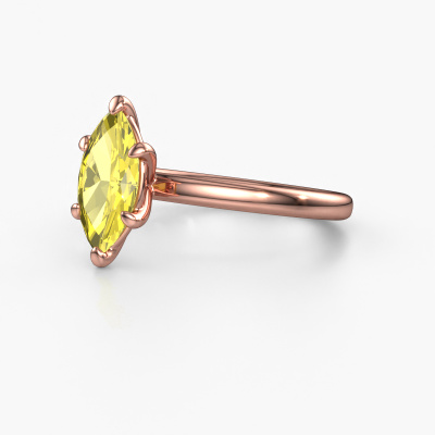 De naam van deze verlovingsring is de Simone MRQ 1. Hij is gemaakt van 14 karaat rosé goud en gezet met een 11x5.5 mm gele lab grown diamant. Zoek je een unieke rosé gouden verlovingsring, die je zelf naar jouw smaak kunt aanpassen? In deze unieke verlovingsring is gele lab grown diamant verwerkt. Deze zijn zorgvuldig geselecteerd om het mooiste effect te creëren. Onze goudsmid vervaardigt jouw verlovingsring beneden in ons eigen atelier, en plaatst de gele lab grown diamant met uiterste precisie in de ring. Vervolgens wordt deze bijgewerkt en gepolijst totdat het resultaat zichtbaar is: de perfecte verlovingsring voor de liefde van jouw leven! Dit sieraad wordt speciaal voor jou gemaakt door onze meester goudsmeden in ons eigen atelier.Omdat wij zelf alle verlovingsring maken en direct aan jou leveren kunnen wij je een verlovingsring leveren tegen een prijs die je nergens anders zult tegenkomen. Een ring wordt pas gemaakt als we een bestelling krijgen, hierdoor hebben wij geen dure voorraden en kunnen wij je de beste prijs garanderen. Wij begrijpen dat het kopen van een verlovingsring online spannend is en willen daarom je zoveel mogelijk informeren over alle specifieke eigenschappen van de ring die jij koopt.Iedere dag is ons team van goudsmeden en sieradenontwerpers aan het werk om nieuwe sieraden te creëren. Het kan zijn dat je ergens een unieke verlovingsring gezien hebt, die je als basis wilt nemen bij het ontwerpen van jouw unieke ring. Neem gerust contact met ons op en we zullen je een aanbod doen, waar je vrijwel zeker verwonderd zult zijn over de kwaliteit en de prijs.Om het voor jou makkelijker te maken kun je ieder besteld sieraad binnen 30 dagen na aflevering eenvoudig weer retour sturen.