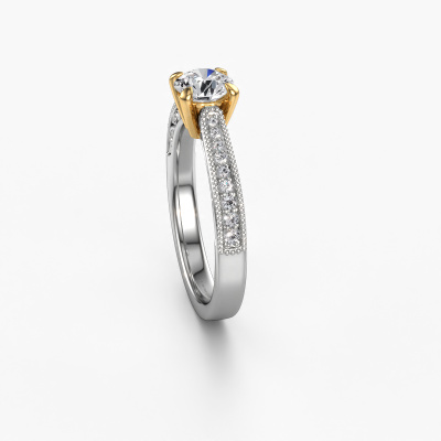 Deze belofte ring heeft de naam Shonta RND. Deze belofte ring uitgevoerd in 14 karaat witgoud is gezet met 0.734 crt diamant. Deze filigraan witgouden belofte ring is een meesterwerkje op zich. Een prachtig ontwerp van verfijnde draadjes die een uniek geheel vormen. Tegelijkertijd een mooie uitdaging voor onze gepassioneerd goudsmeden! Met veel toewijding, geduld en uiterste precisie vervaardigen zij deze belofte ring speciaal voor jouw geliefde. Alles wordt met de hand gemaakt, waardoor ieder draadje tot in het kleinste detail perfect bewerkt kan worden. Een lang proces van smeden, bewerken en polijsten, totdat de meestersmid de belofte ring in het licht houdt en tevreden is... een perfecte belofte ring waar hij echt trots op is. Daarom is deze vintage filigraan belofte ring ook een bijzondere belofte ring om te schenken aan de liefde van je leven! Die ene persoon ga jij binnenkort vragen, en alleen voor deze persoon is deze unieke belofte ring voor vervaardigd! Prachtig toch? Dit sieraad wordt speciaal voor jou gemaakt door onze meester goudsmeden in ons eigen atelier.Door onze modernste technieken kunnen wij met uiterste precisie prachtige sieraden te ontwerpen en voor jou personaliseren in de hoogste juwelierskwaliteit. Tegelijkertijd zijn onze belofte ringen altijd 30% goedkoper dan bij een andere juwelier. Dit komt doordat alle belofte ringen pas vervaardigd worden op het moment dat deze besteld wordt en we daardoor geen dure voorraden hoeven te hanteren. Mocht je aan een bepaald budget gebonden zijn, kunnen we je graag adviseren welke combinatie je het beste kunt kiezen.Iedere dag is ons team van goudsmeden en sieradenontwerpers aan het werk om nieuwe sieraden te ontwerpen. Het kan zijn dat je ergens een mooie belofte ring gezien hebt en deze graag zou laten verwerken tot jouw unieke ring. Neem in dat geval contact met ons op en we zullen je een aanbod doen, waar je vrijwel zeker verwonderd zult zijn over de prijs en de kwaliteit.Om het voor jou makkelijker te maken kun je ieder besteld sieraad binnen 30 dagen na aflevering eenvoudig weer retour sturen.